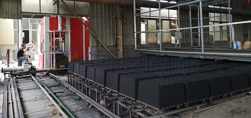 1、全自動造型機打出來的砂型通過地軌控制系統運輸,省掉人工拉砂型;